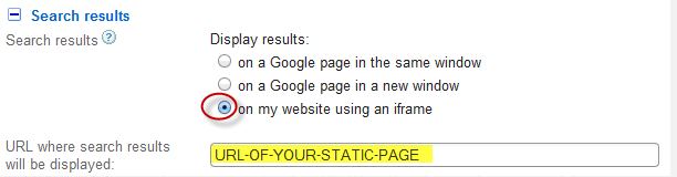 Catatan: Ganti HALAMAN-URL-HERE dengan url halaman di mana hasil pencarian akan ditampilkan (yang Anda telah ditambahkan pada langkah 4)